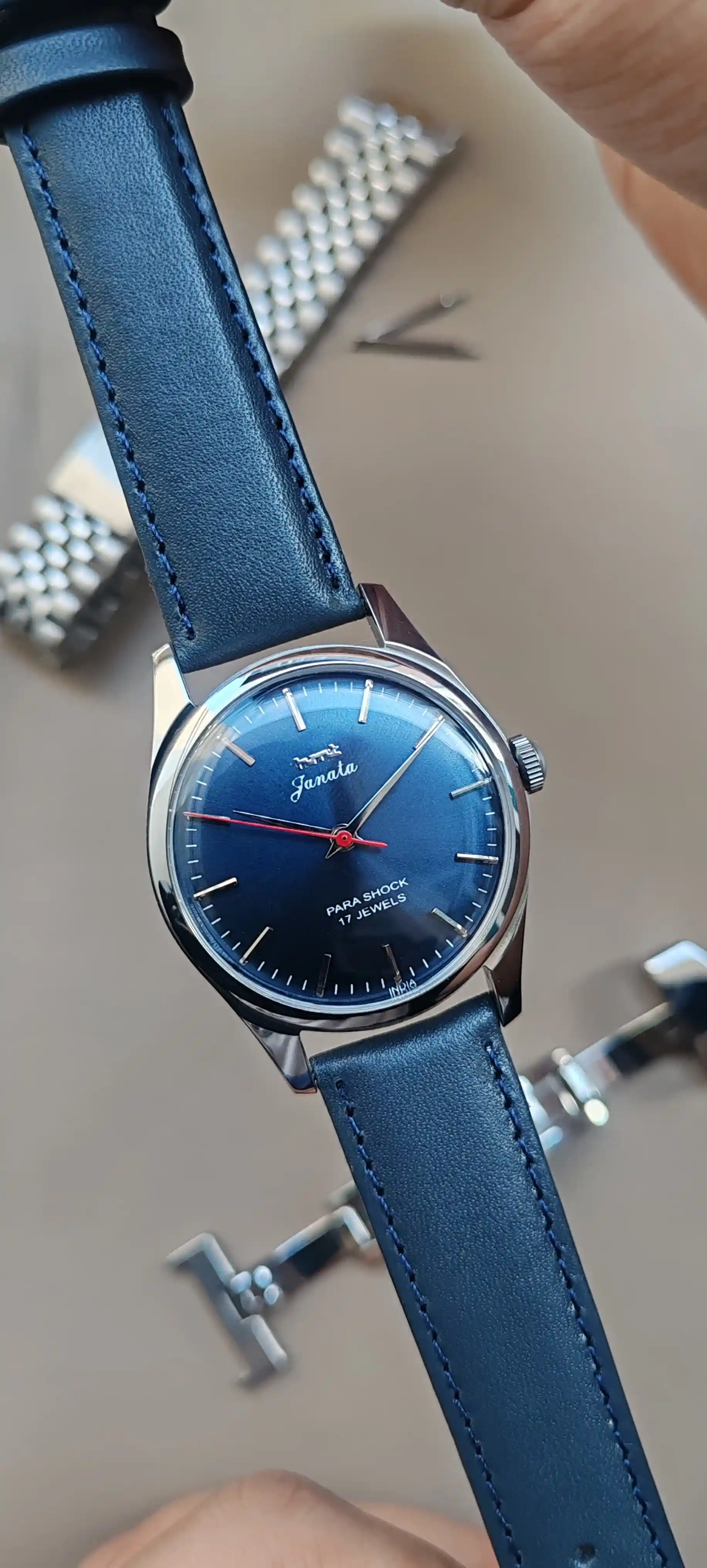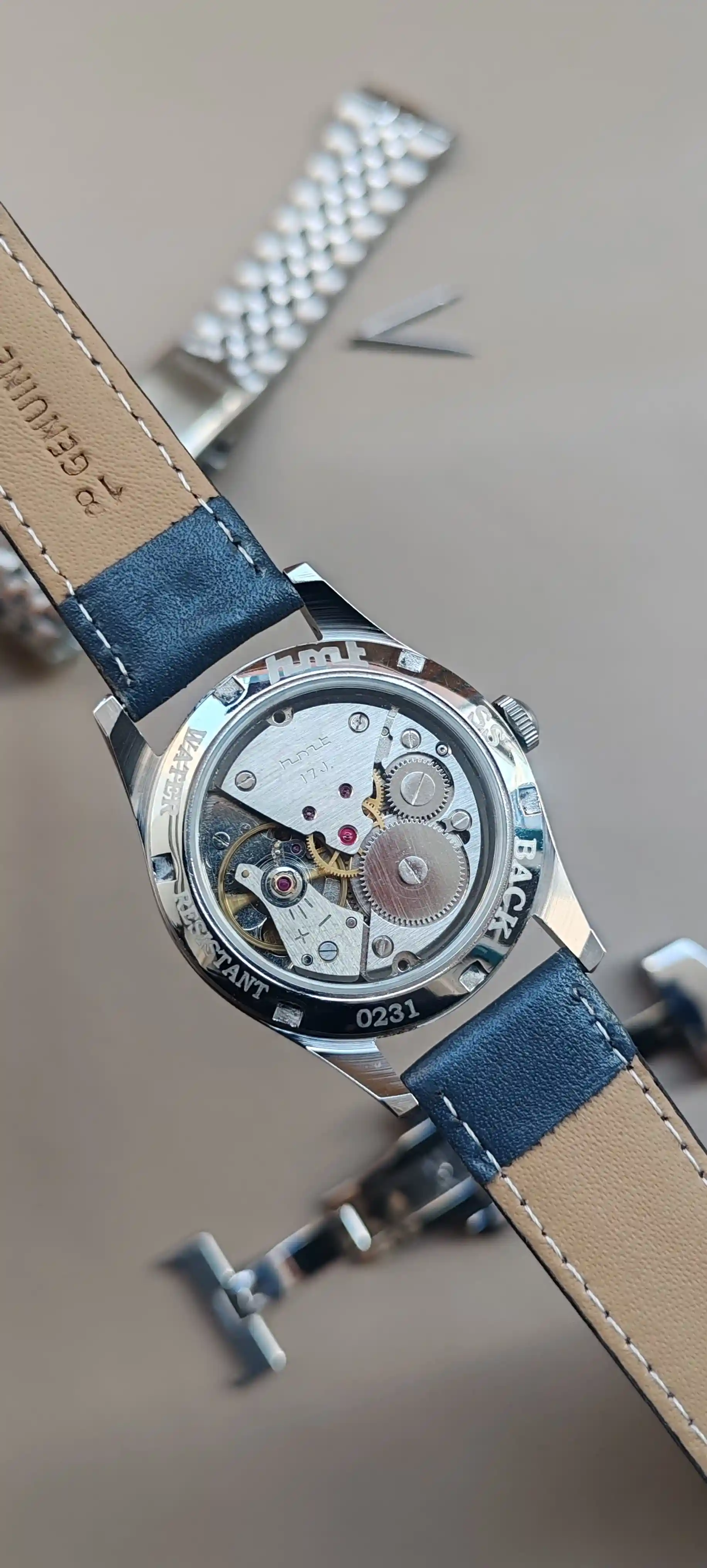 This is Hmt Janata Beautiful Midnight Blue Dial mechanical handwinding authentic 0231A 17 jewels hmt movement wrist watch.