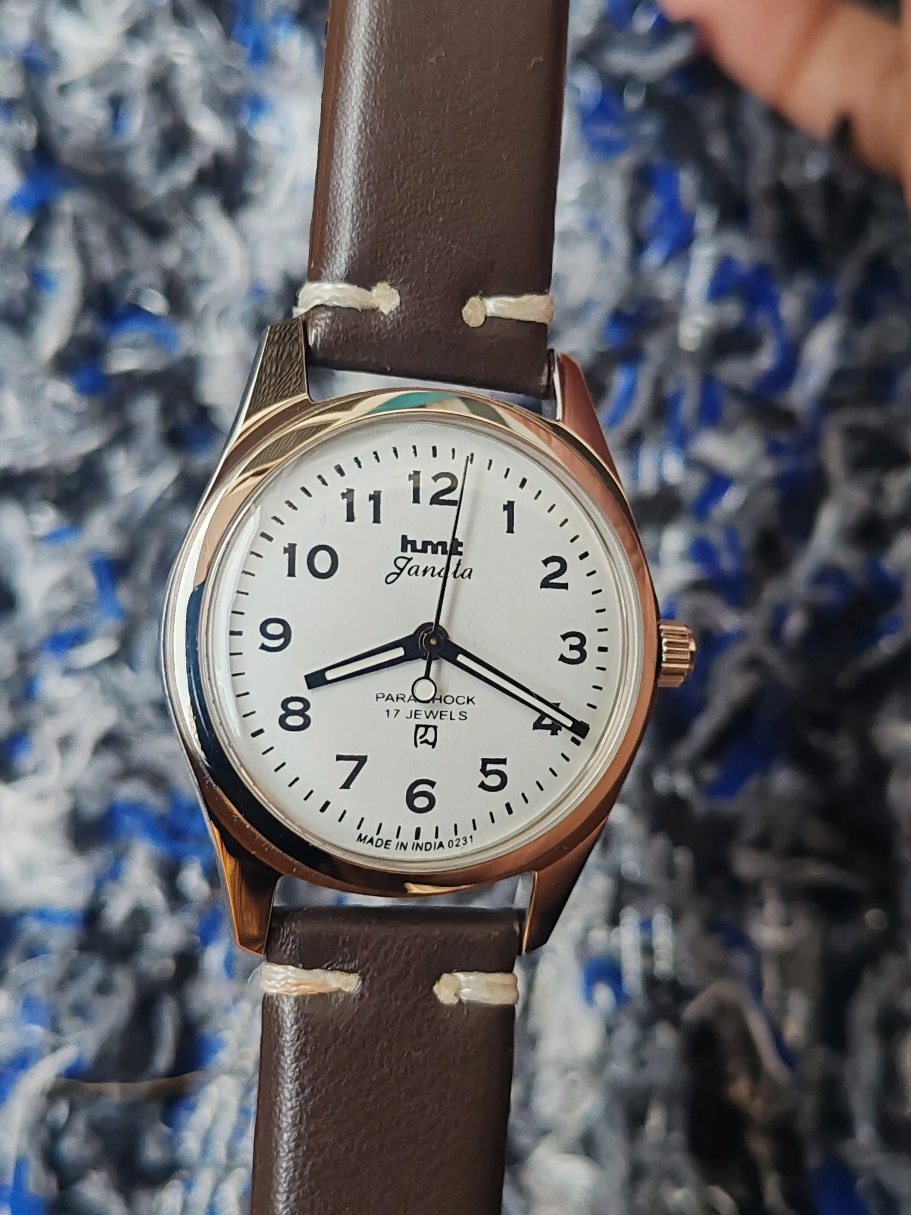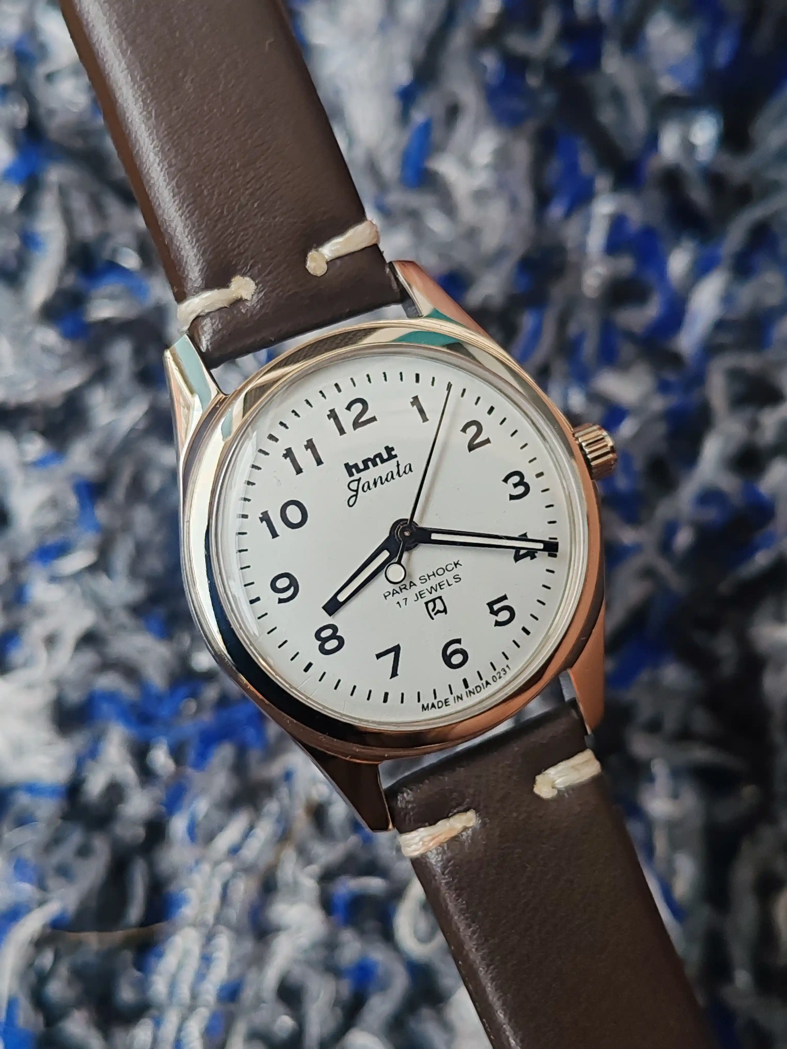 This is Hmt Janata Beautiful White Dial mechanical handwinding authentic 0231A 17 jewels hmt movement wrist watch.