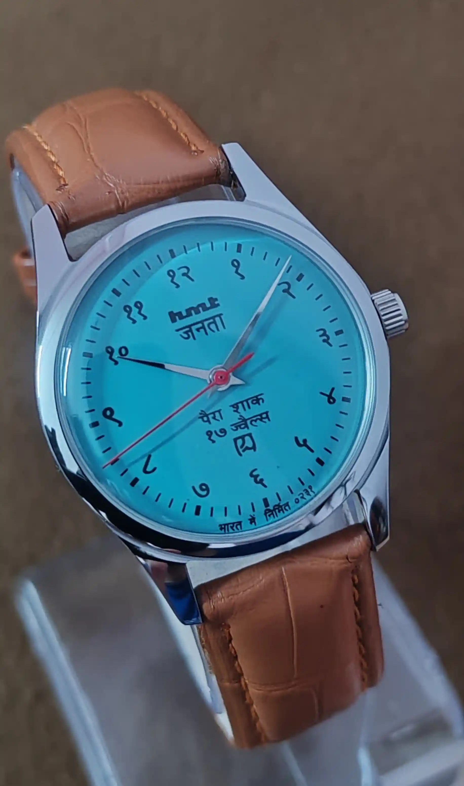 This is Hmt Janata Devnagari Beautiful Tiffany Blue Dial mechanical handwinding authentic 0231A 17 jewels hmt movement wrist watch.
