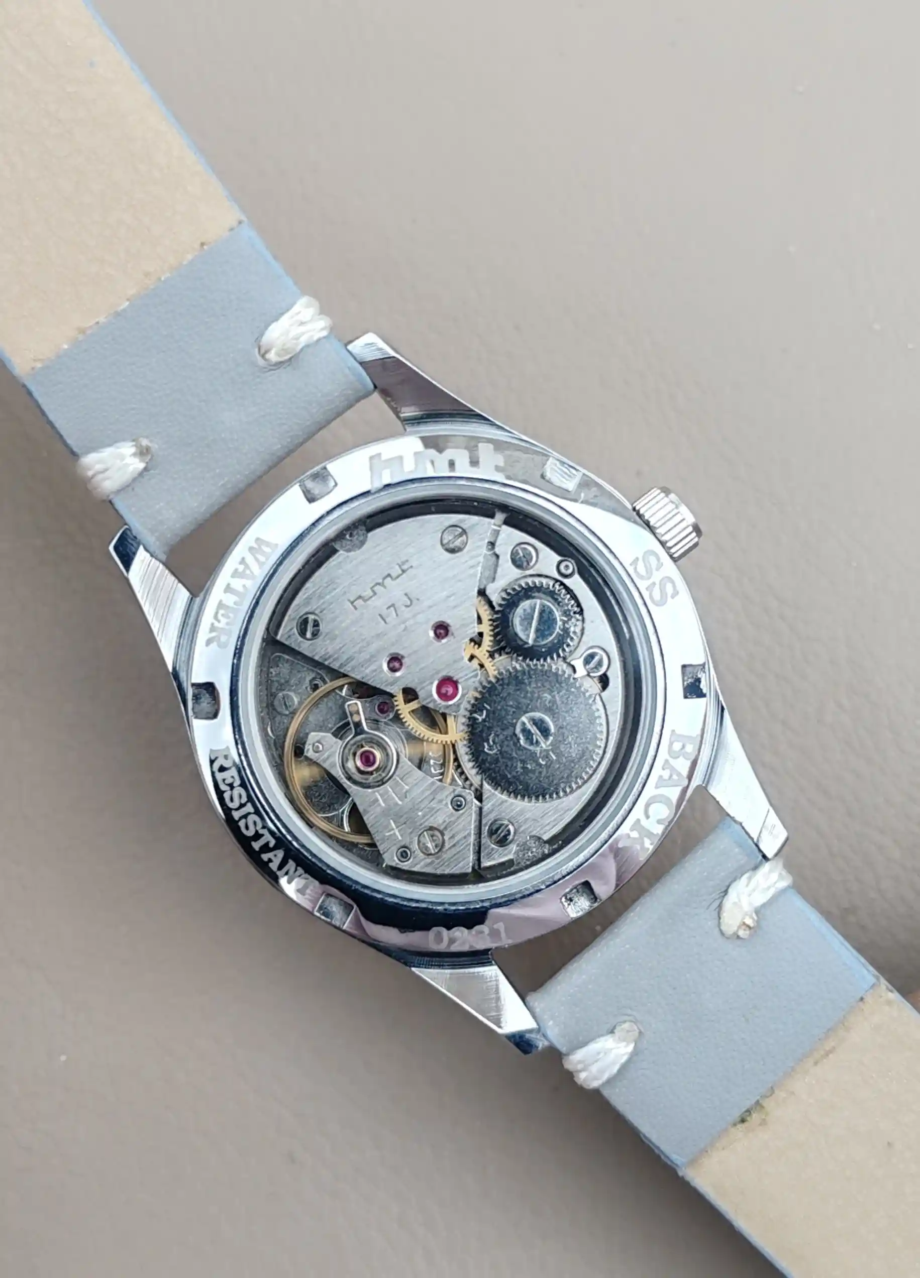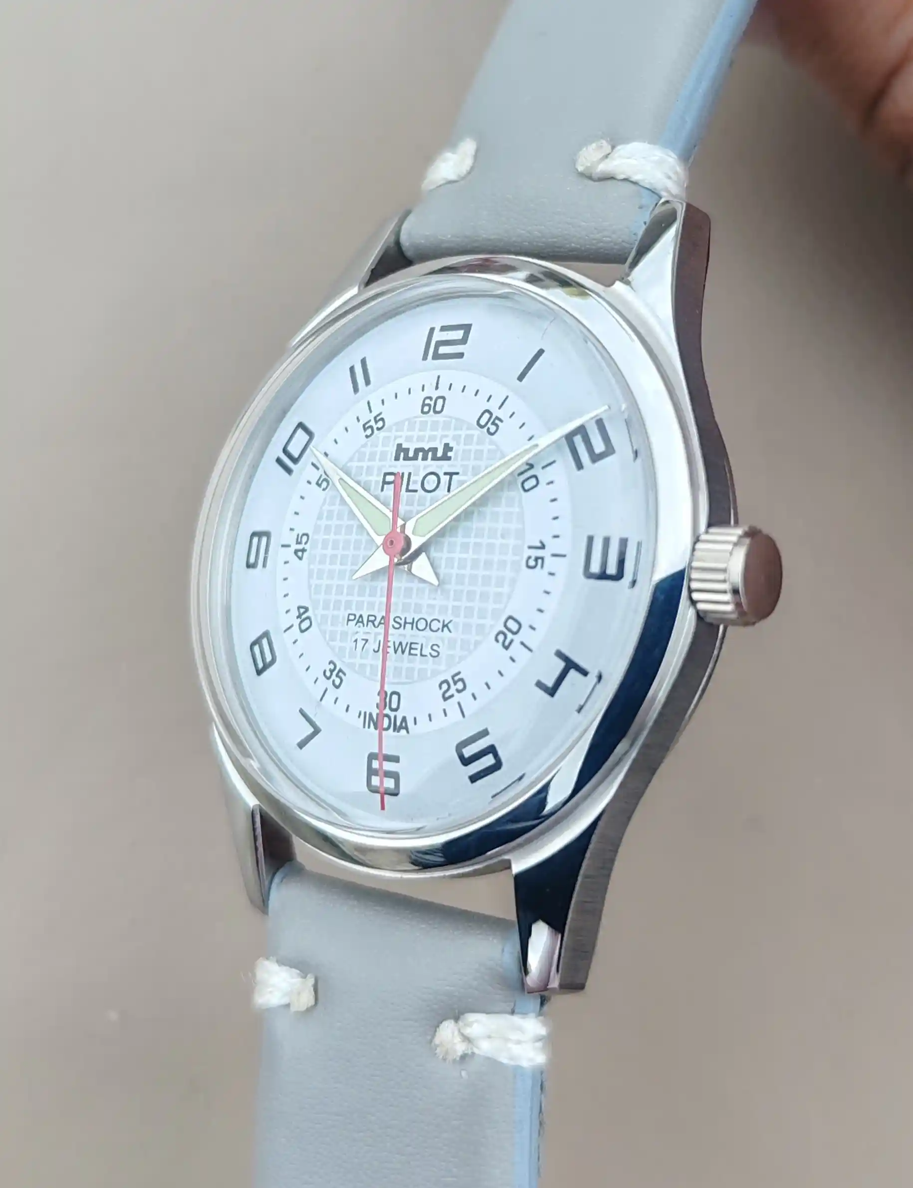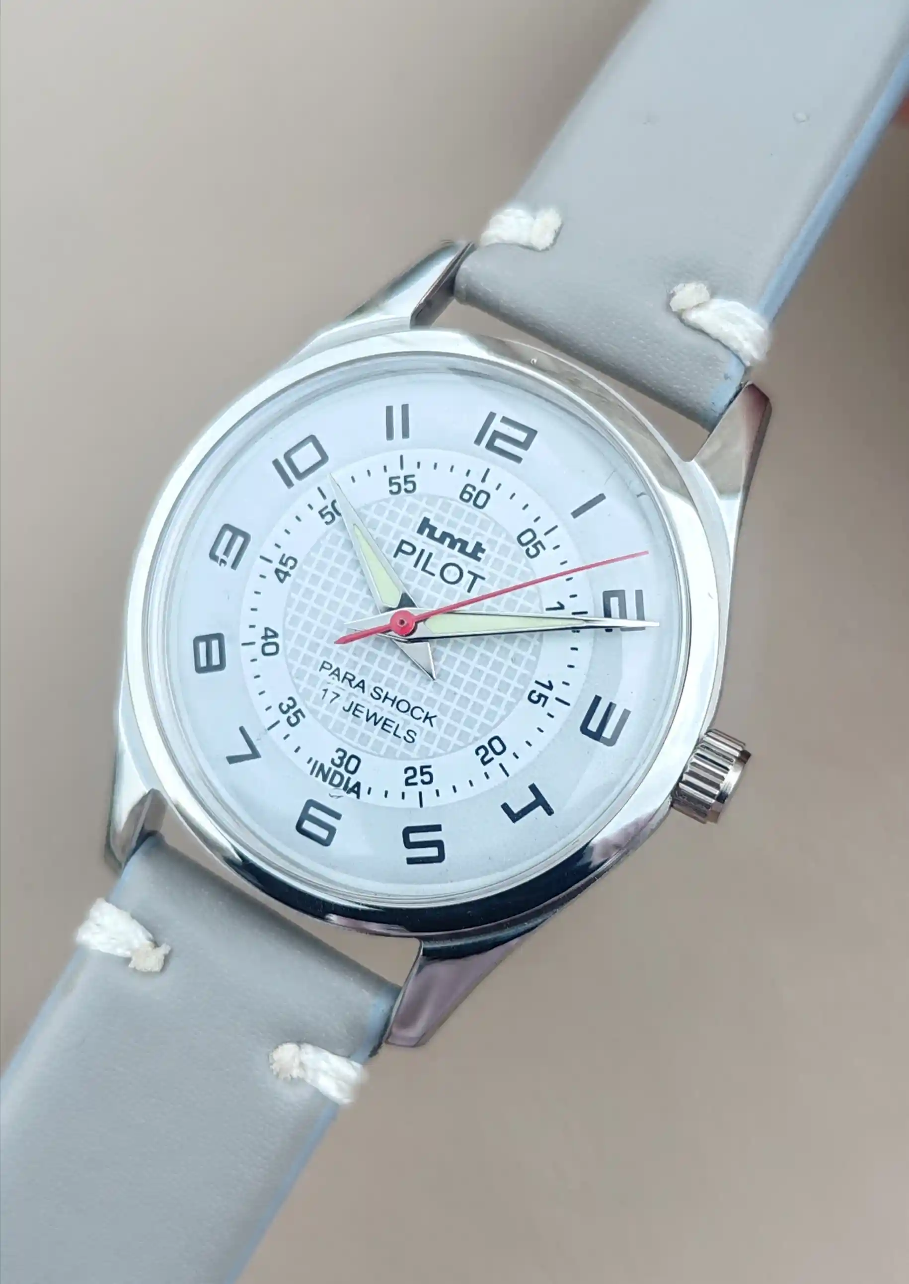 This is Hmt Pilot Beautiful White Dial mechanical handwinding authentic 0231A 17 jewels hmt movement wrist watch.