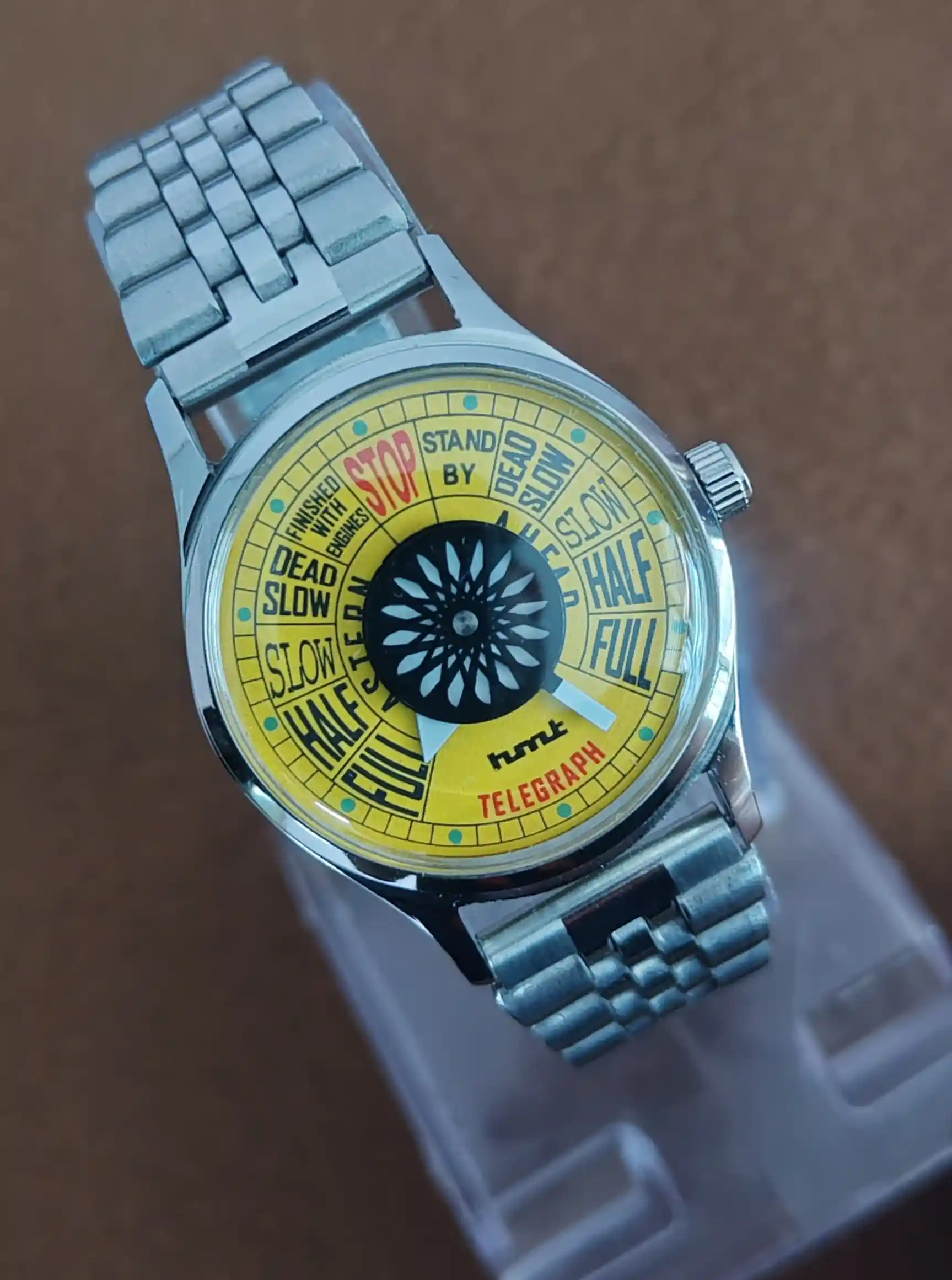 This is HMT Telegraph Custom Build Yellow Dial mechanical handwinding authentic 0231A 17 jewels hmt movement wrist watch.